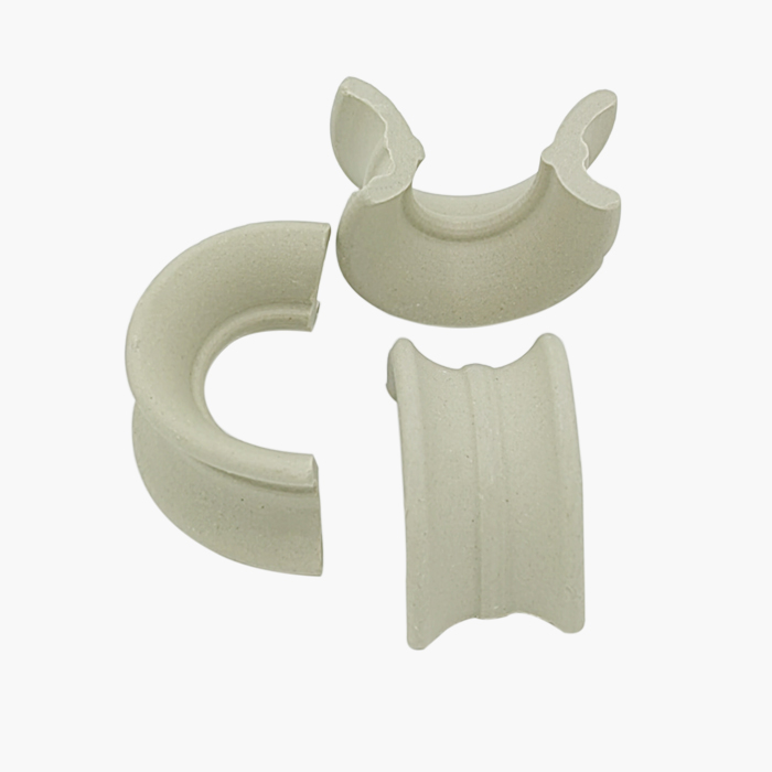 陶瓷矩鞍環(huán)的形狀介于環(huán)形與鞍形之間,因而兼有兩者之優(yōu)點(diǎn)。其填料床層具有較大的空隙率,床層內(nèi)多為圓弧形液體通道,減少了氣體通過(guò)床層的阻力,也使液體向下流動(dòng)時(shí)的徑向擴(kuò)散系數(shù)減小。
