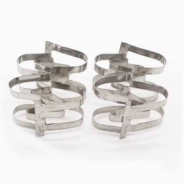 金屬雙層共軛環(huán)又叫金屬超級拉西環(huán)、異拉西環(huán),該填料主要材質有碳鋼、鋁合金、不銹鋼201、301、304、321、316、316L等材質。該產(chǎn)品相對于其他傳統(tǒng)介質的擁有超過33%的負載能力,幾乎67%為低壓力下降超過12%提高分離效率。其結果是在能源和降低投資成本。該產(chǎn)品可直接替代廣泛使用的拉西環(huán)填料。